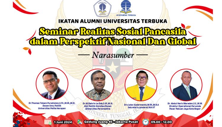 Pada 1 Juni 2024 bertepatan dengan hari lahirnya Pancasila 2024, Keluarga Besar Ikatan Alumni Universitas Terbuka (IKA UT) mengadakan Kegiatan seminar dalam bentuk sarasehan.